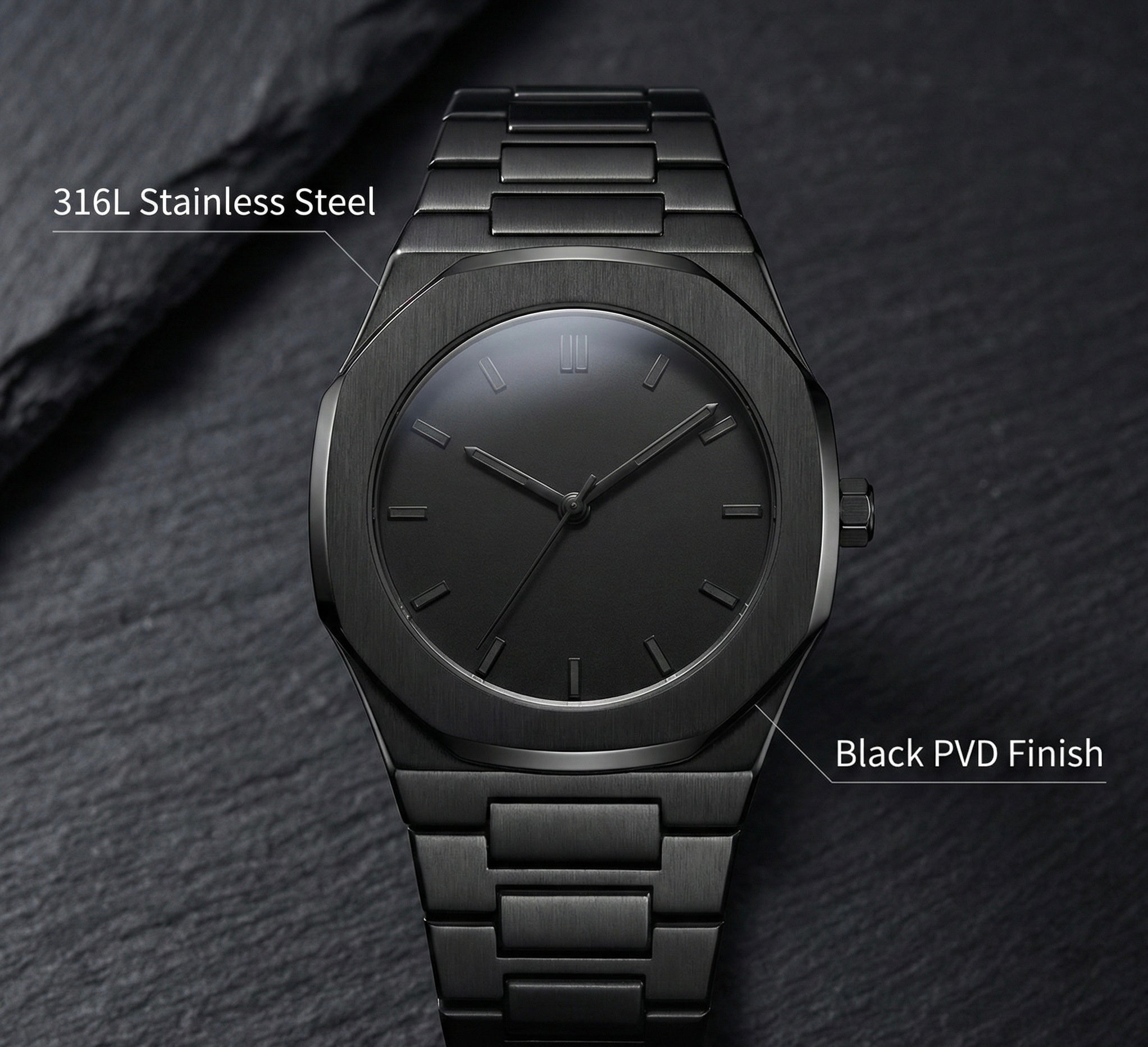 Équipée d’un mouvement quartz Seiko VJ21, la Black Phantom garantit une mesure du temps fiable. Ses aiguilles et index en acier inoxydable avec LumiNova noire, combinés à un verre minéral antireflet, assurent une lecture optimale même dans l’obscurité. Avec un fermoir papillon dissimulé pour un confort maximal, la Black Phantom allie précision, confort et style audacieux, devenant un compagnon de confiance au quotidien.